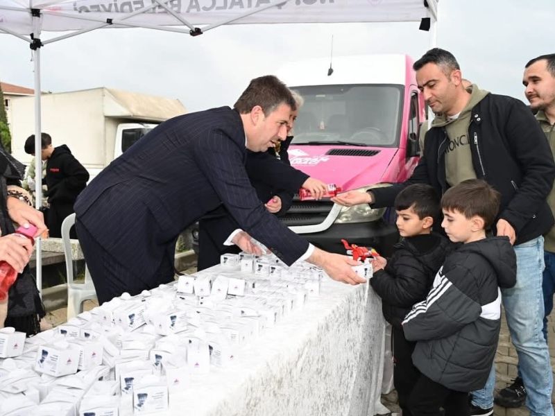 Mevlid programının ardından Başkan Erhan Güzel, Cumhuriyet Meydanı’nda hemşehrilerimizle bir araya gelerek Gazi Mustafa Kemal Atatürk, silah arkadaşları ve tüm şehitlerimizin ruhuna lokma ikramında bulundu.