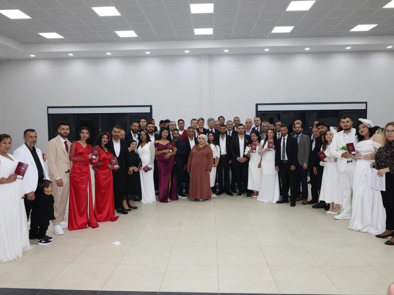Nikahların ardından, Vali Yardımcısı Okan Leblebiciler, Kaymakam Yasin Öztürk ve Başkan Erhan Güzel, yeni evlenen çiftlere evlilik cüzdanlarını takdim ederek iyi dileklerde bulundular. Çiftlerin aileleriyle birlikte hatıra fotoğrafları çekildi, tören renkli ve duygusal görüntülere sahne oldu.