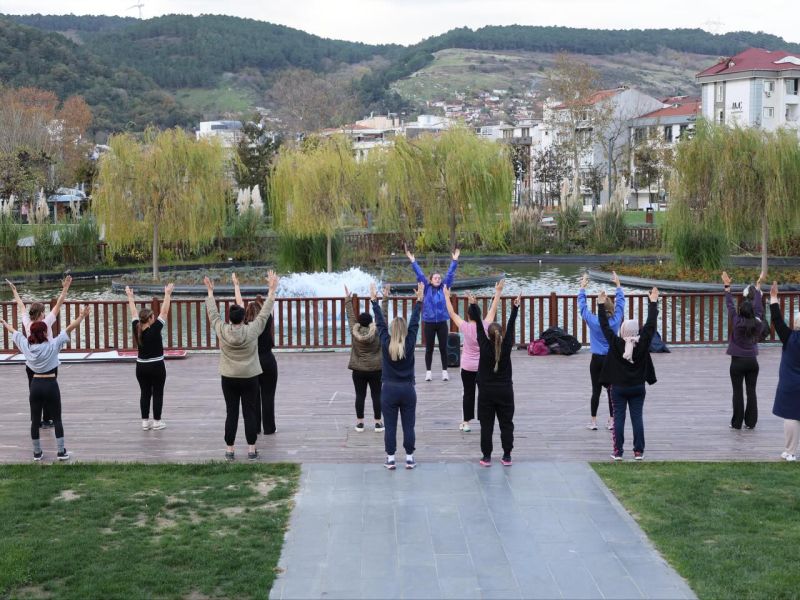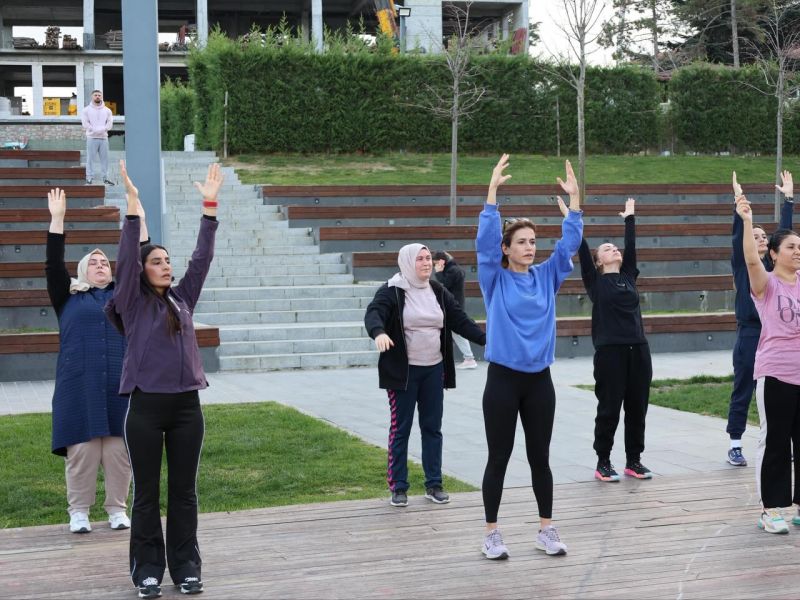 Katılımcılar, profesyonel eğitmenler eşliğinde yapılan egzersizlerle güne hareketli bir başlangıç yaparken, etkinliğin ilçe genelinde sağlıklı yaşam kültürünü güçlendirmesi amaçlanıyor.