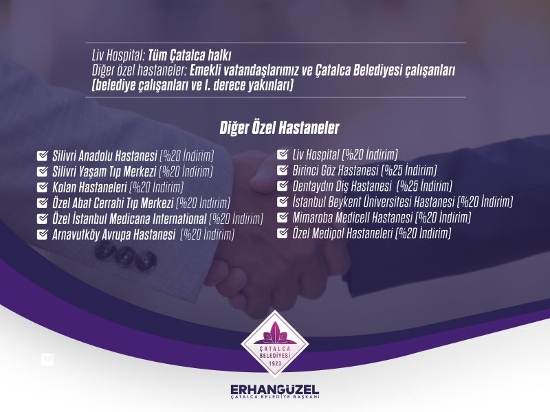 Çatalca Belediyesi olarak, hemşehrilerimizin ve belediye çalışanlarımızın sağlık hizmetlerine daha kolay ve avantajlı koşullarda erişimini sağlamak amacıyla hayata geçirilen bu protokolün ilçemize hayırlı olmasını diliyoruz.