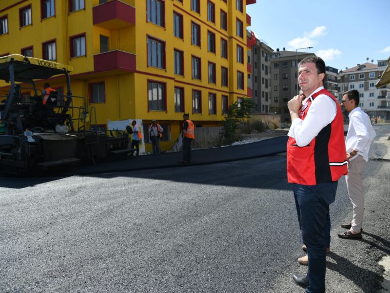 Çatalca'da Perşembe günleri halk pazarının kurulduğu, Şehit Uzay Kişin Sokak'ta ulaşımı ve park alanlarını daha konforlu hale getirmek için asfaltlama çalışmaları devam ediyor.