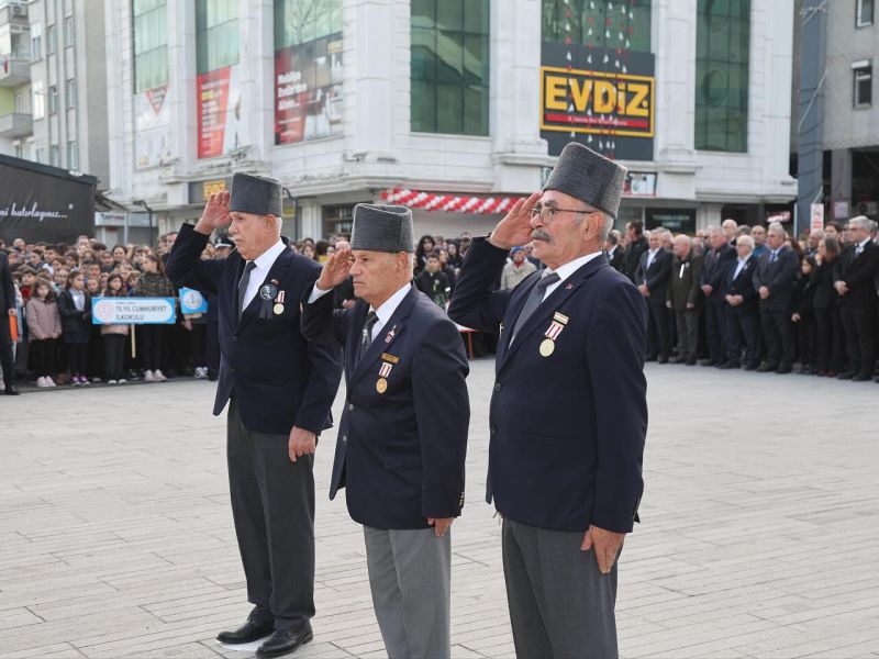 Sabah saatlerinde Cumhuriyet Meydanı’nda düzenlenen çelenk sunma töreninde; İlçe Kaymakamı Yasin Öztürk, Belediye Başkanı Erhan Güzel, İlçe Garnizon Komutanı Yarbay Harun Aydemir, ilçe protokolü, öğretmenler, öğrenciler ve çok sayıda vatandaş hazır bulundu.