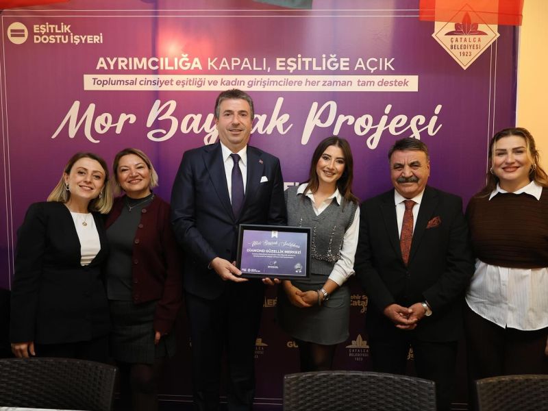 Çatalca’da kadınların üretimde, istihdamda, sosyal ve ekonomik yaşamda daha güçlü yer aldığı eşit ve adil bir toplum inşa etmek için çalışmaya devam edeceklerini vurgulayan Başkan Güzel “Kadınların toplumsal ve ekonomik hayatta daha güçlü bir şekilde yer almasını destekliyoruz. Mor Bayrak Projemizle bu çabalarımızı somut bir adımla taçlandırmaktan büyük mutluluk duyuyoruz. Eşitlik ve adalet ilkelerini savunmaya ve bu doğrultuda projeler geliştirmeye devam edeceğiz” ifadelerini kullanarak, işletme sahiplerine teşekkür ederek sertifikalarını teslim etti.
