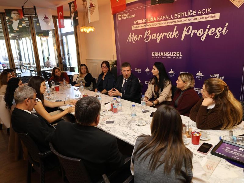 Başkan Erhan Güzel, Çatalca’da Mor Bayrak Sertifikası almaya hak kazanan işletmelerin temsilcileriyle bir araya geldi.